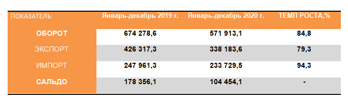 Особых надежд на то, что в 2020 году наша экономика продемонстрирует рост во внешней торговле не было. Экспорт снизился на 20,7%. Импорт на 5,7%.