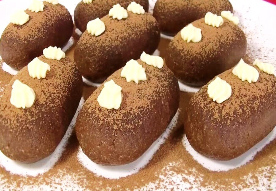 готовые пирожные мы аккуратно укладываем на тарелку. На час кладём пирожное в холодильник, чтобы она немножко застыла. Ну а через час мы получаем самые вкусные пирожные.