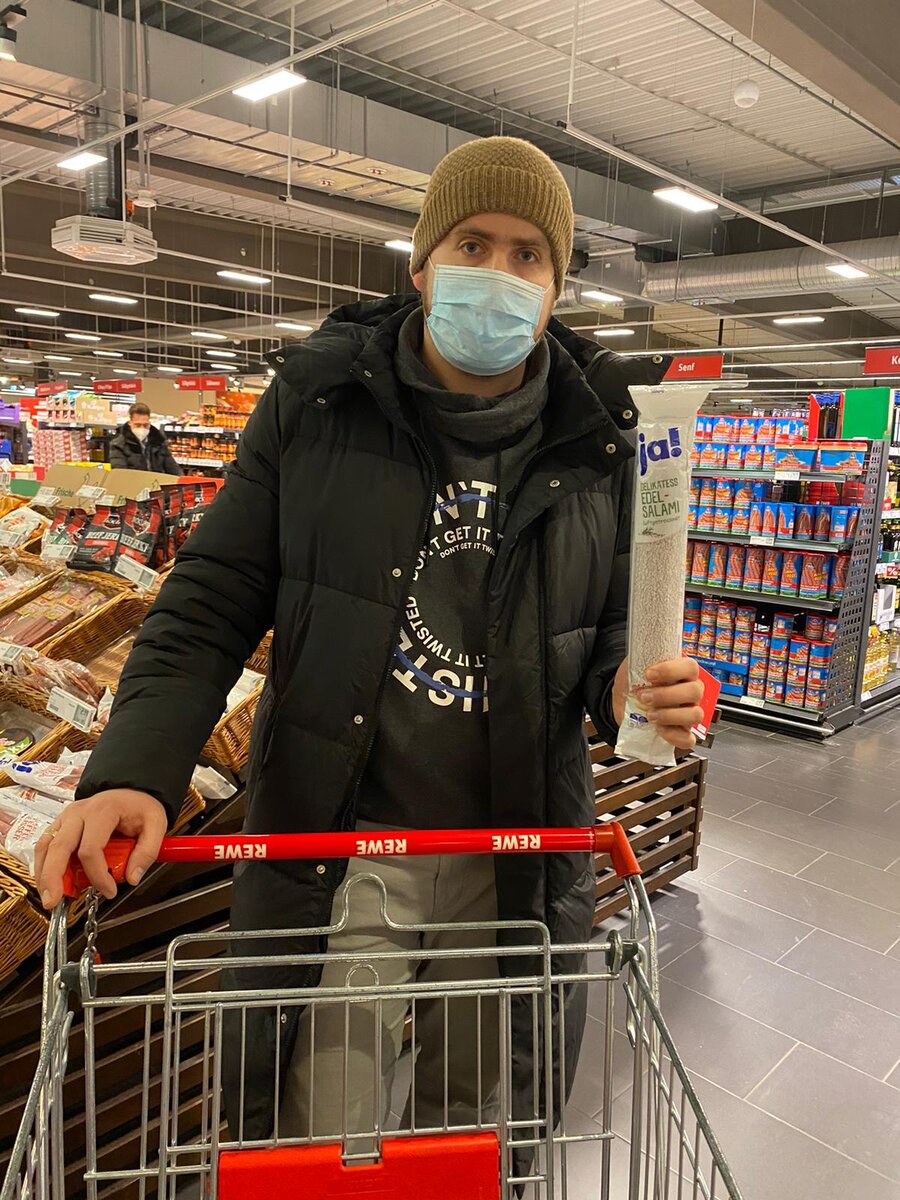 Итак, зашёл в супермаркет REWE и купил самую дешёвую полукопчёную колбасу местной торговой марки „Ja“. Цена за 500 грамм - 3,30 евро.