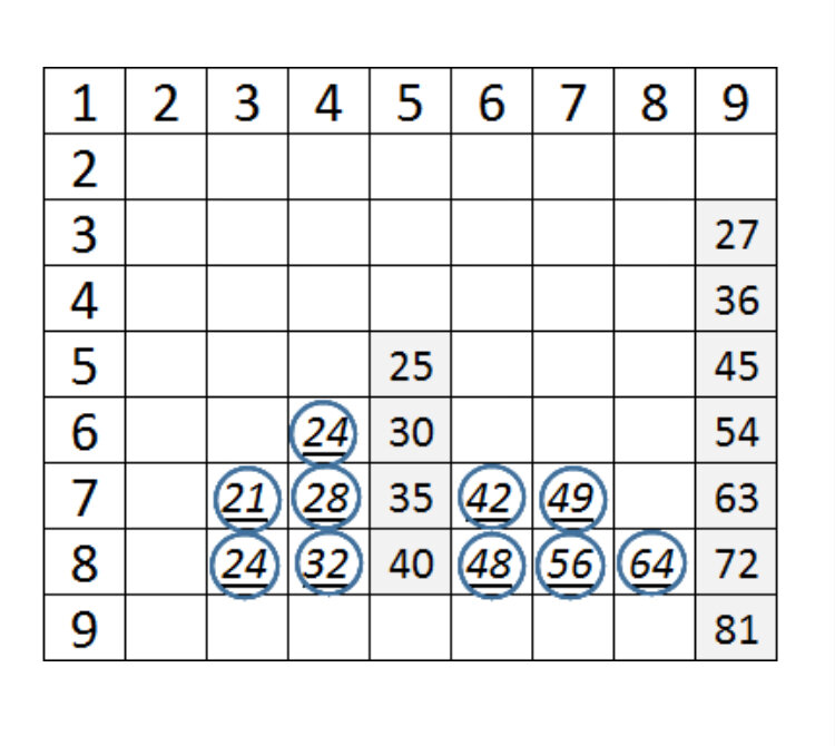 Итак, полная таблица умножения содержит 100 примеров. Отбросим простые примеры умножения на «1» и «10». Так же поступим и с лёгкими примерами с ответами до 20 – их начинают учить на уроках во втором классе и запоминаются они легко, а уже на лето задают самостоятельно выучить всю таблицу умножения. Далее исключим простой пример 6 х 6 и зеркальные повторы, например, 7 х 3 и 3 х 7.