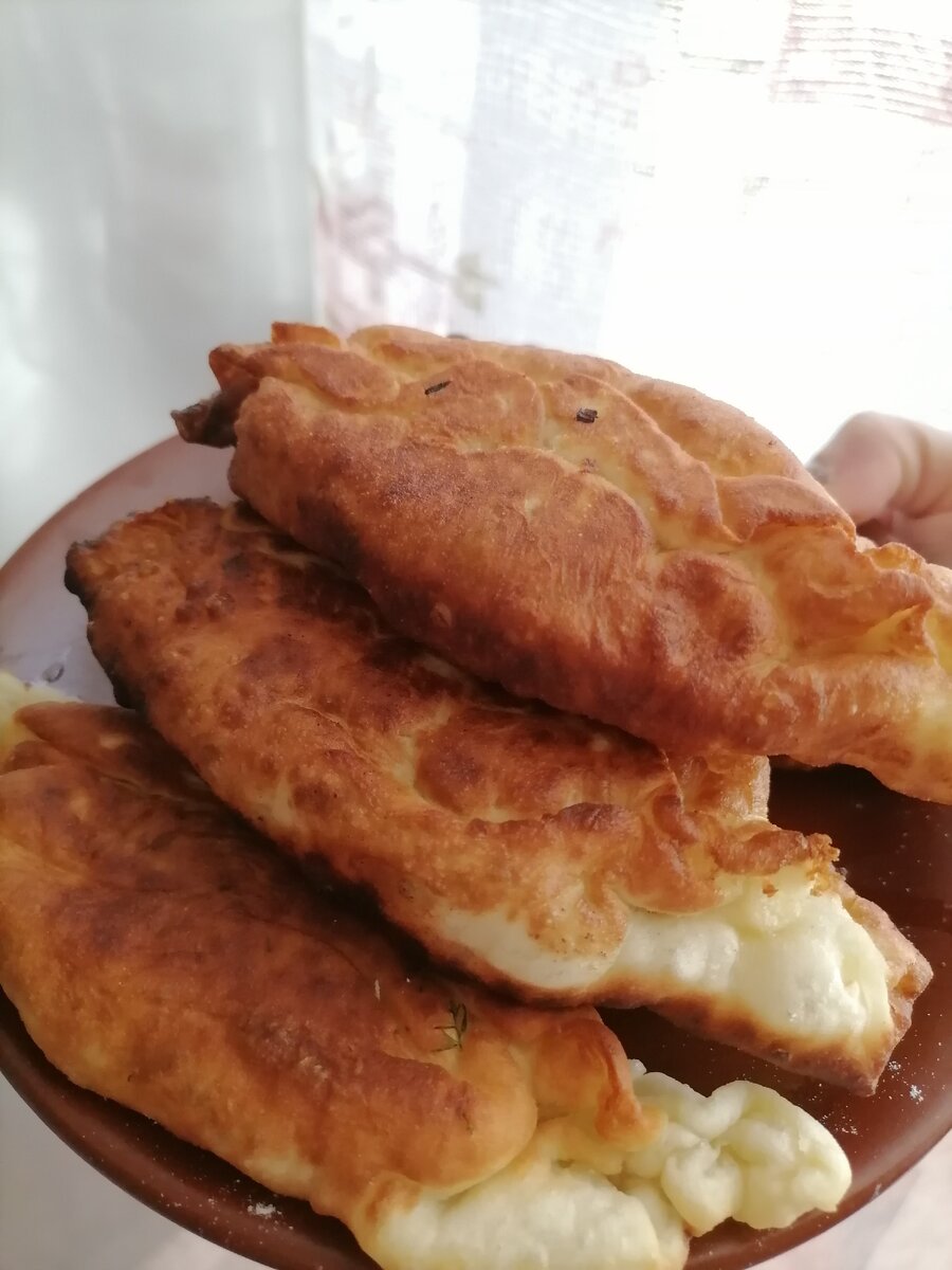 Наливаем в сковороду масло такк, что бы половина пирожка могла утонуть в нём. И разогреваем её. Выкладываем пирожки для обжарки, как только подрумянится одна сторона, переворачиваем.