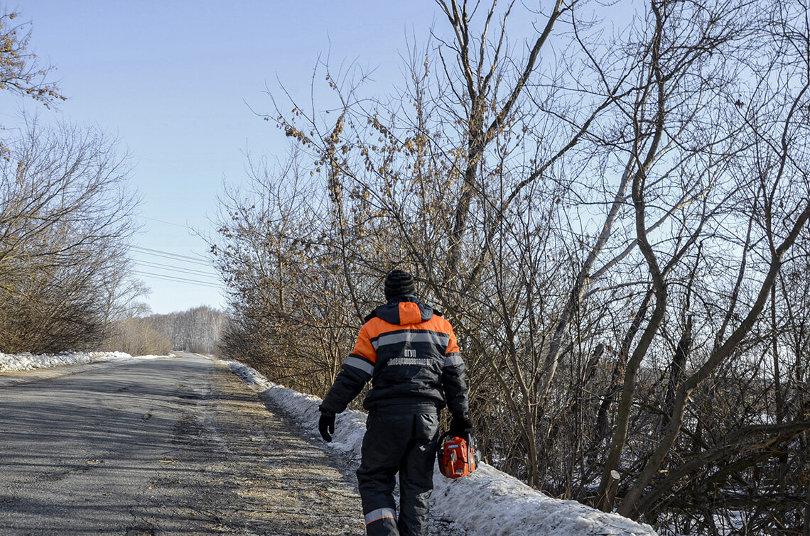 В момент визита корреспондента «ДВ» дорожные рабочие уже заканчивали опиловку зарослей клена на одной стороне автодороги по направлению на Дубовое. Бензопилой мастерски работал Вадим Буянов.