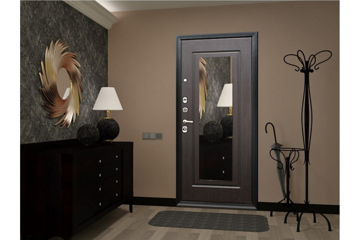 Входная дверь с зеркалом выполняет не только свою первостепенную функцию, но и сочетает в себе ряд других особенностей: