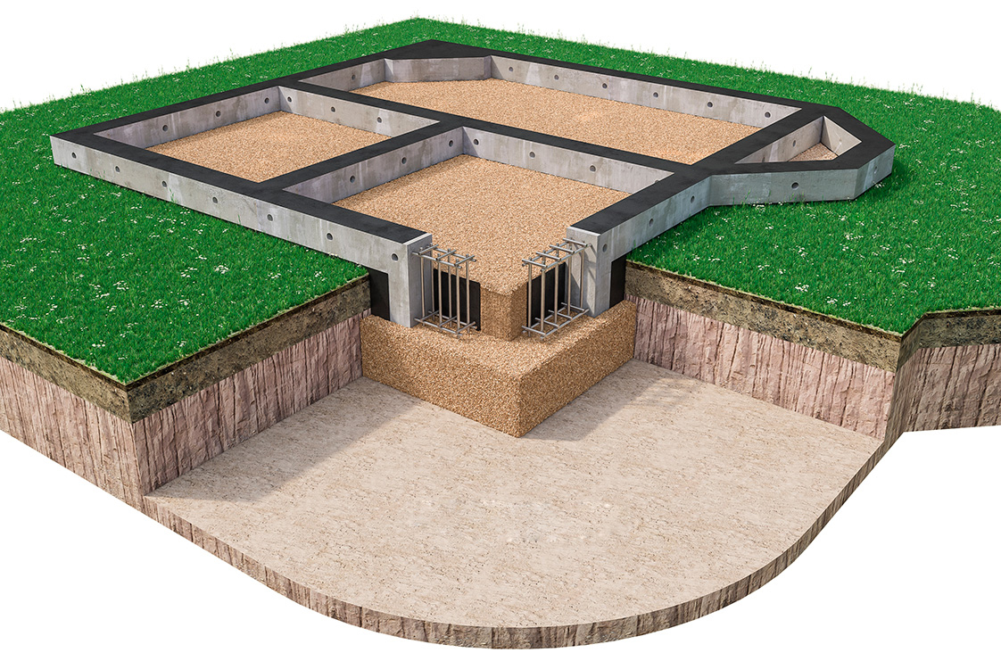 Началом надёжного и долговечного дома служит правильно возведённый фундамент. От качества выполненной работы зависит устойчивость всей конструкции. Для обеспечения всех прочностных требований под каждой несущей частью необходимо сооружать опору, с целью равномерного распределения нагрузок. Основание здания заливают на глубину промерзания грунта в этой местности. Ширина подошвы находится на 20-25 см ниже этого слоя. Традиционным материалом для фундамента, считается бетон разных марок, в состав которых входит цементно-песчаная смесь, состоящая из таких элементов, как гранит и песчаник. Считается, что фундамент обязан быть шире стен здания. Как правило, по конструкции их разделяют на: Так как распределяемая нагрузка воздействует и на грунт под подошвой основания, надлежит знать структуру почвы нижних слоёв. Встречаются следующие типы таких грунтов: По имеющемуся типу грунта на участке выбирается подходящий вид фундамента. Строительство категорически не рекомендуется, если присутствует изл