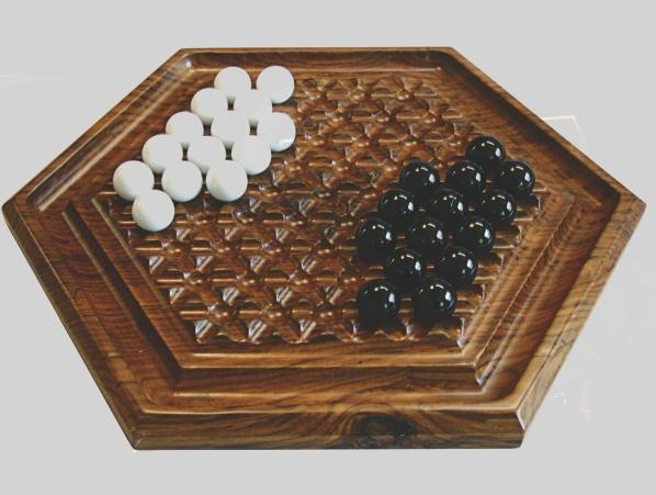 гексагональная доска 6х6, набор шашек двух цветов (по 12 штук).