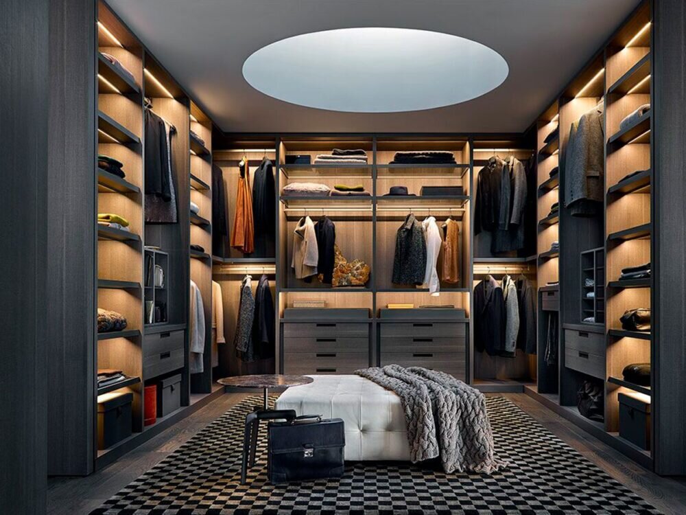 Это лучший вариант из всех. Если у вас много личных вещей, вы любите идеальный порядок, тогда вам есть смысл обустроить отдельную комнату. Вы сможете упорядочить все свои вещи, а так же отказаться от других шкафов. Это значительно освободит пространство для зала, спальни, прихожей, холла и т. д.