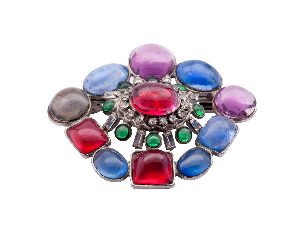 Дом Gripoix (Maison Gripoix) был небольшой семейной компанией, основанной в 1870 году Августиной Грипуа. Мадам Грипуа и её дочь Сюзанна использовали технологию pâte de verre – «стеклянная паста», при которой керамическая или гипсовая форма заполнялась разноцветной стеклянной крошкой и специальными связующими веществами и запекалась в печи. Правда позже, Августина Грипуа немного изменила классическую технологию: она сначала плавила стекло, а уже потом заливала стеклянную массу в пресс-формы. Кабошоны получались чистого и насыщенного цвета, прозрачные и блестящие.