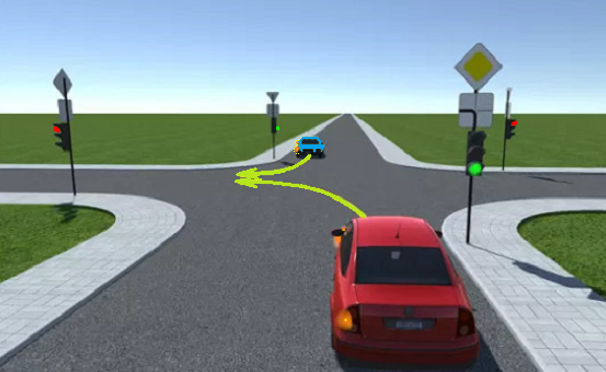 3. Красный автомобиль собирается поворачивать налево, а синий – направо.