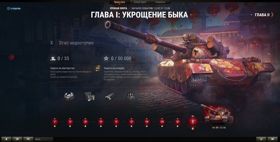 Как обычно, есть задачи "на усердие", где нужно тупо набивать урон или опыт, и "на мастерство", которые можно выполнять только на технике 9-10 уровня, что уже ограничивает количество возможных участников. Как правило, в этой категории соревнуются наиболее скиловые игроки. Да и даже им бывает не под силу пройти все задания "на мастерство".
