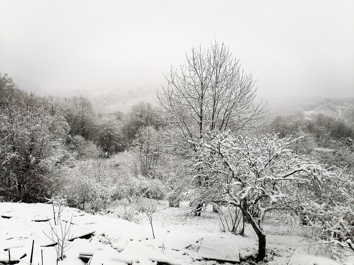 На фотографии наш сад у дома в Сочи, сегодня суббота, удивительно, что в пятницу мы ходили в кофтах.