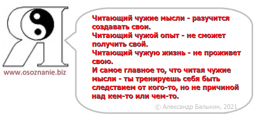 И самое главное то, что читая чужие мысли - ты тренируешь себя быть следствием от кого-то, но не причиной над кем-то или чем-то.
