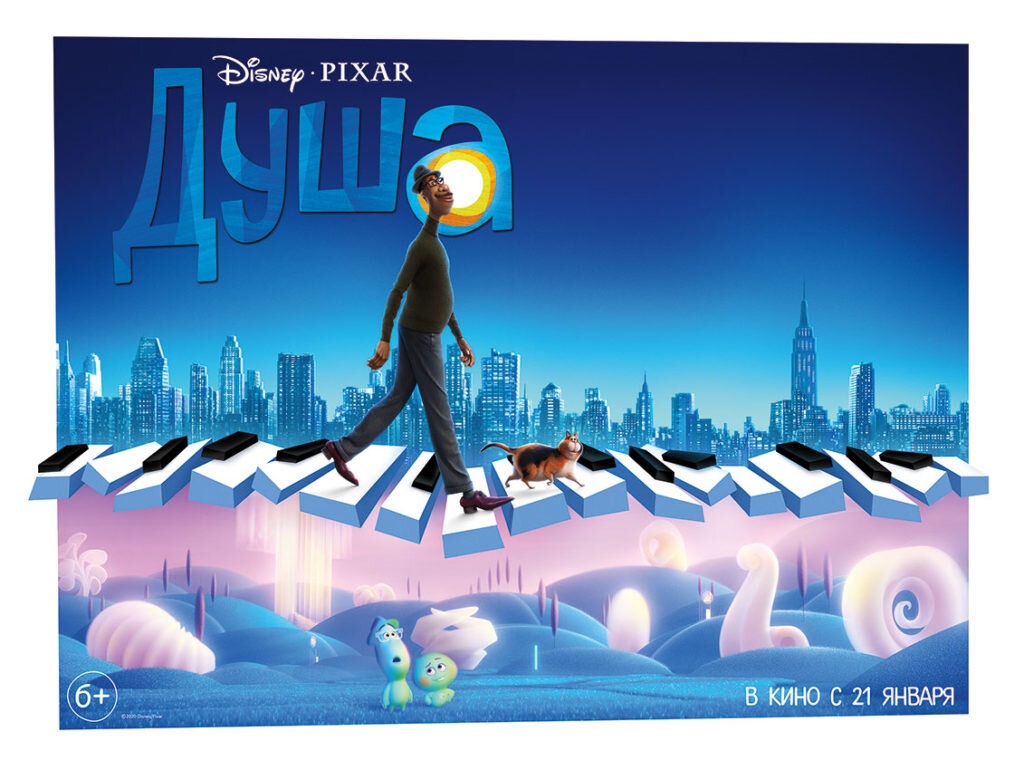 Новый мультфильм легендарной студии Pixar. Месседжем сравнить его можно с хитом «Головоломка», получившим «Оскар» в 2016 году. В центре повествования – история жизни мистера Джо Гарднера, школьного учителя музыки, мечтавшего исполнить джазовую музыку на сцене. Однако по дороге на музыкальный фестиваль с Гарднером происходит нечастный случай – его душа отделяется от тела и попадает на небо, где как раз начинается семинар под названием «Ты». Теперь Джо становится наставником для души №22, предназначенной новорождённому ребёнку. Но прежде чем отправить двадцать второго в новый для него, эта душа должна пройти обучение.