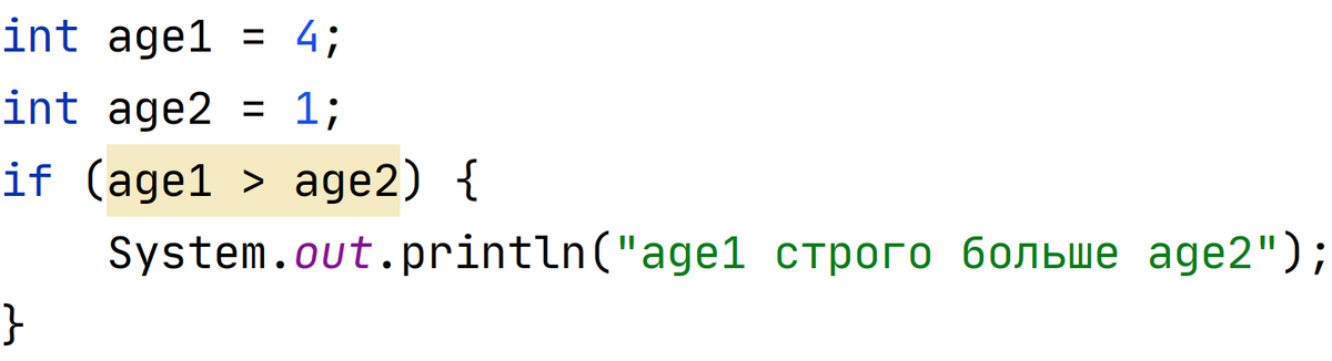 Одним из главных инструментов языка Java являются условные конструкции. Условные конструкции необходимы в местах, где нам нужно выполнить какое-то действие, если условие истинно, или выполнить другое действие, если условие ложно. Конструкция if/else/else if Данная конструкция сравнивает age1 и age2 и если ag1 больше, то будет выполнен код, который находится в фигурных скобках. Также можно задать альтернативное действие, если условие окажется ложным. Также мы может добавлять дополнительные условия, используя конструкцию else if Таких конструкций else if может быть сколь угодно много, на этом вас никто не ограничивает. Также обратите внимание как происходит сравнение чисел. Для этого используется "двойное" равно == Логические операции Какие логические операции мы можем применять? Комбинирование логических операций Также логические операции можно комбинировать и создавать сложные условия. К примеру пользователь задает с клавиатуры свой возраст и количество денег. Мы хотим проверить, что