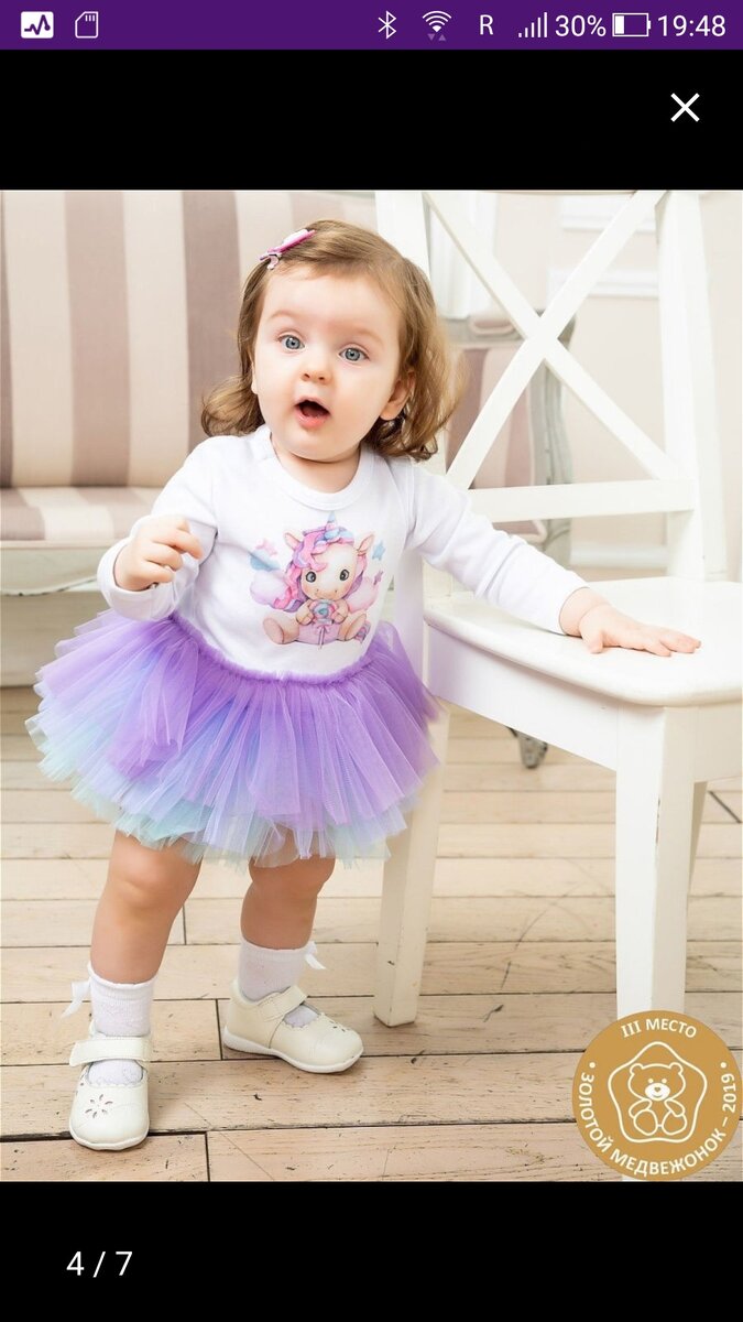 Платье-боди от фирмы Luxury Baby. Отличная фирма, брали демисезонный комбинезон (с нашей зимой теплее брать смысла нет), качество и исполнение просто класс! Но вернусь к боди. Большая линейка моделей, с разными принтами и цветом фатина. Отзывы все положительные, а для меня это немаловажно. Не маломерка. Цена - 870 руб. Единственное, что меня смутило - это длинный рукав. Хотелось выбрать такую модель, чтоб мы её ещё могли надеть весной и летом. Но, вцелом, впечатление очень приятное.