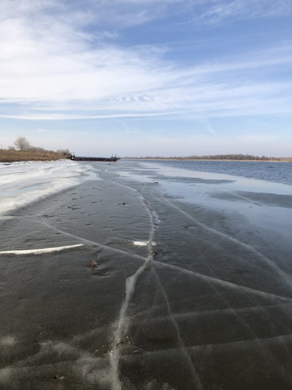 Погода шепчет! Днем +3-4, ветер, без горячего чая не обойтись. На Ахтубе есть одинокие рыбаки на лодках, льда практически нет, только по берегу, но опасный.