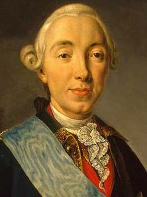 Карл Петер Ульрих Гольштейн-Готторпский, более известный как Пётр III, родился 21 февраля (по н. ст.) 1728 года. Он был внуком Петра Великого и племянником императрицы Елизаветы Петровны. В 1742 году Елизавета Петровна назвала его своим наследником, который после её смерти должен взойти на российский престол. В 1744 году он был помолвлен с немецкой принцессой Софией Ангальт-Цербстской, после крещения получившей имя Екатерина. В августе 1745 года была сыграна свадьба. В биографии Петра III имеется любопытный факт: со временем Елизавета Петровна всё больше разочаровывалась в племяннике, который всё своё время проводил в играх и всё сильнее пропитывался немецким характером и любовью ко всему немецкому. Елизавета понимала, что Пётр будет плохим императором для России. В 1754 году у Петра и Екатерины родился сын Павел, которого Елизавета Петровна забрала к себе и собственноручно занялась его воспитанием. Она стала готовить его к управлению государством и прививать ему любовь к России. В декабре 1761 года Елизавета Петровна умерла, и российский престол занял император Пётр III Фёдорович. В это время Российская империя участвовала в Семилетней войне и к моменту коронации нового царя практически уничтожила немецкую армию. Победа русской армии была полной, однако политика Петра III, основанная на обожании всего немецкого и преклонении перед немецким королём, вынудила его совершить предательский акт по отношению к своему государству. Новый император не подписал акт капитуляции Германии, а заключил с немцами союз. Российская империя потеряла все завоеванные земли и преимущества. Русские победы в Семилетней войне пошли прахом. Всё это настроило против императора русскую армию и народ. Его называли «ничтожнейшим из людей» и «ненавистником русского народа». 28 июня 1762 года император был свергнут с трона и арестован. Не обошлось и без вмешательства Екатерины. Спустя неделю после свержения Пётр III был убит. Его правление продолжалось 186 дней. После него российский престол заняла его супруга, которая вошла в историю под именем Екатерина ||.