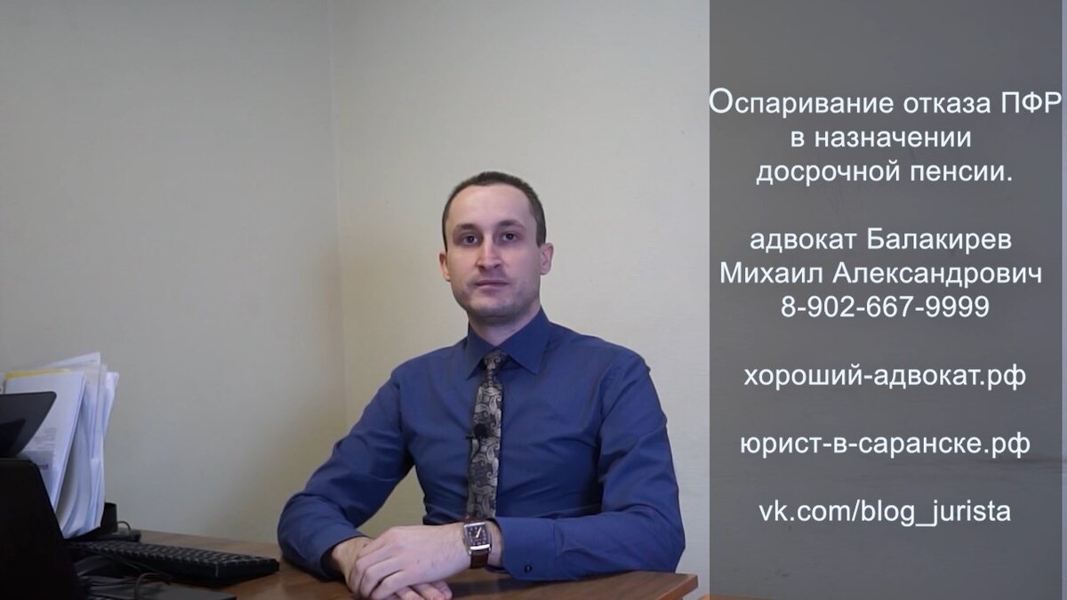 Записал на видео общую информацию о условиях назначения, типичных причинах отказа в назначении досрочной пенсии и про обжалование отказов ПФР в суде.