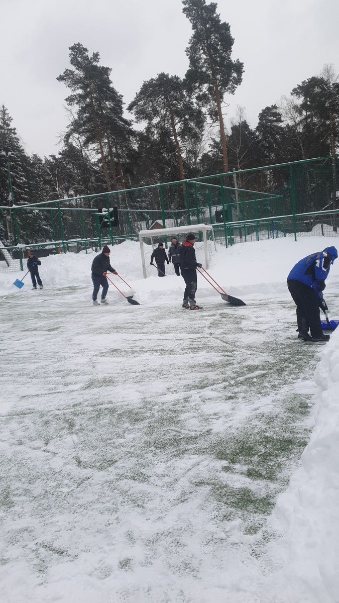 Вс хороший футбол, после лопат не сразу все вспомнили как играть ногами, но всё-таки, как ни старались, некоторые по мячу попали и даже забили гол.
