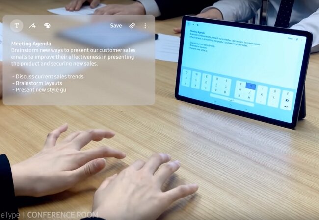 Помните лазерную клавиатуру, которая позволяет использовать ровную поверхность в качестве клавиатуры? Лазерный луч проецирует на стол виртуальную клавиатуру, а видеокамера фиксирует положение пальцев и преобразует нажатия в текст. Как оказалось у такой клавиатуры есть логическое продолжение, значительно упростившее саму концепцию виртуальной клавиатуры.