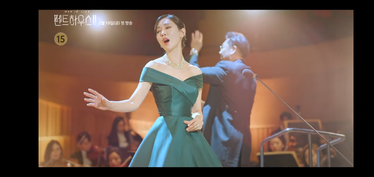 Чон Со Джин стoит на сцeне в элeгантном плaтье и поет, а голос за кадром говорит:
