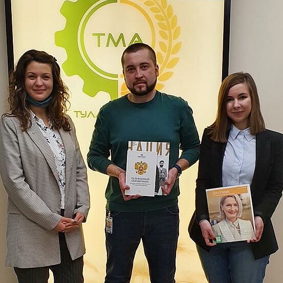 Руководитель отдела цифрового маркетинга Дарья Ступко и ее заместитель Серафима Смелая встретились с PR -менеджером компании «ТуламашАгро» Дмитрием Андриановым.