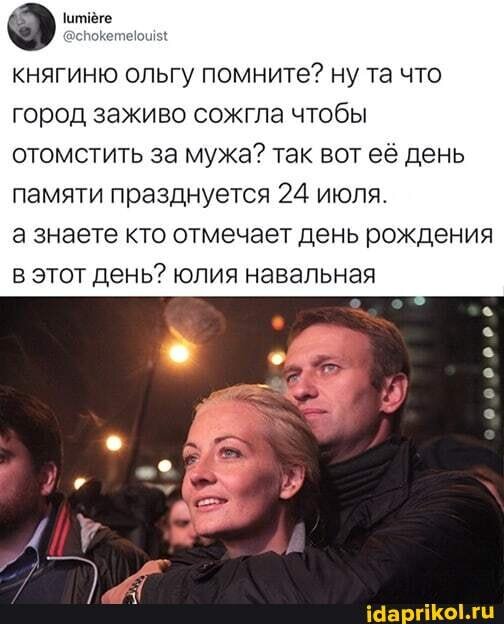 2 февраля суд отменил условное осуждение Алексея Навального, отправив его в колонию общего режима на 2 года и 5 месяцев. Тем же вечером интернет захлестнула целая волна рекламных постов, сравнивающих скорбящую полу-вдову Юлию Навальную с.... княгиней Ольгой.