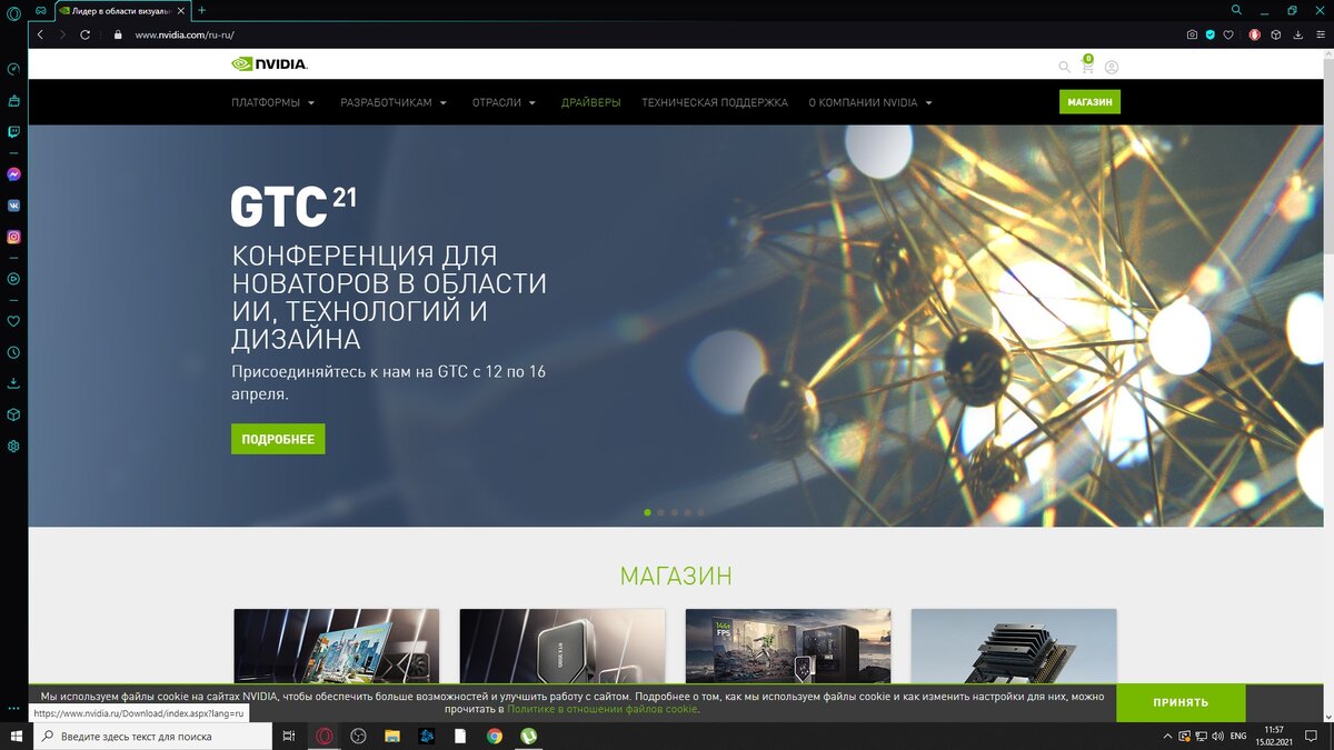 Для начала в поисковой строке вашего браузера нужно ввести кодовые слова для поиска сайта - "Nvidia" или "Nvidia драйвер"