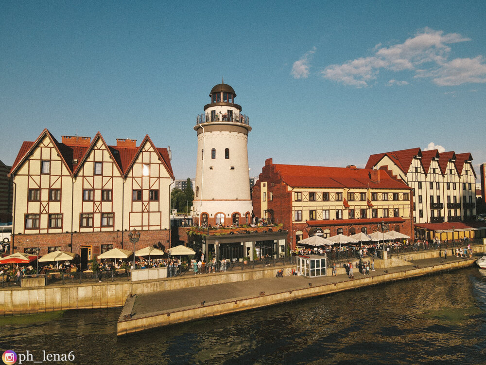 Недавно отреставрированный маленький кусочек набережной - практически все, что хоть как-то напоминает о бывшем Кёнигсберге. Если, конечно, удастся найти столик, то ненадолго можно представить себя в старом немецком городке.