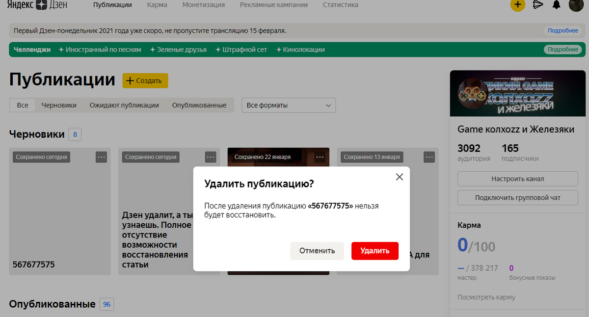 Дзен удалит, а ты и не узнаешь. Полное отсутствие возможности восстановления статьи