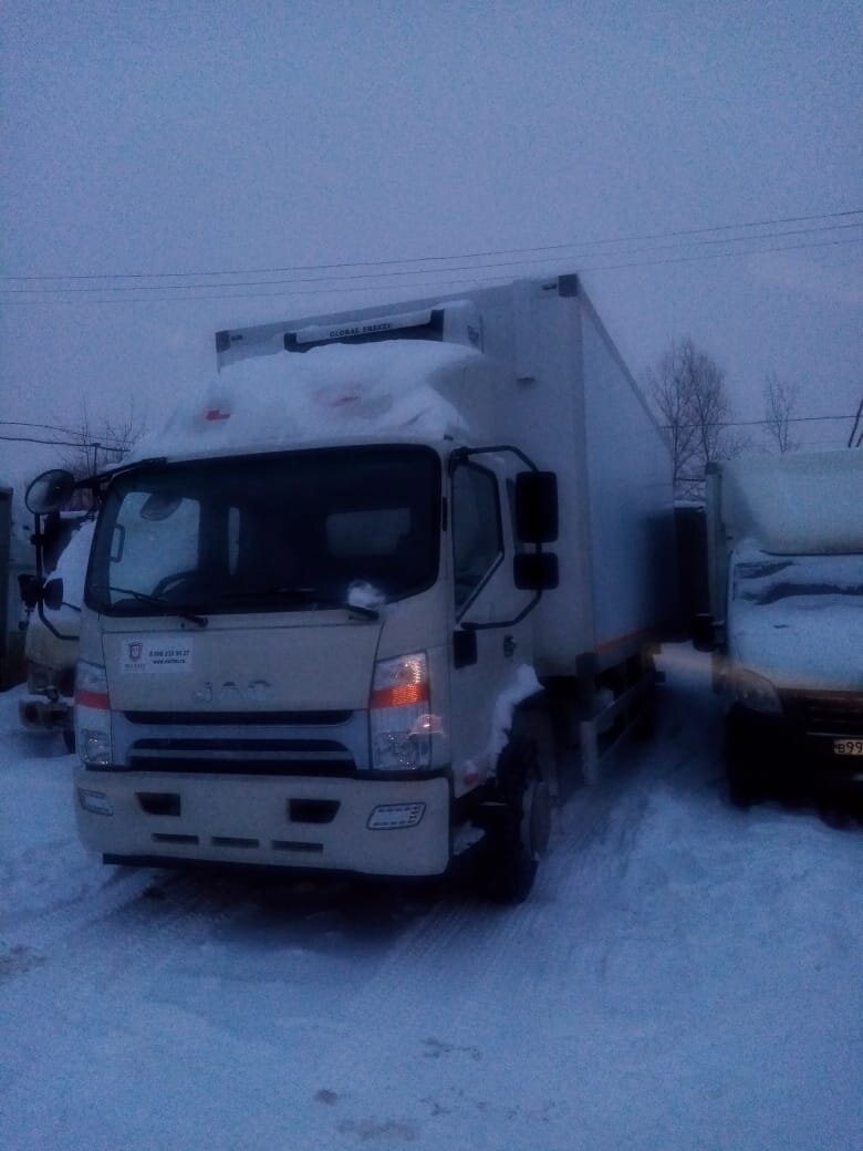 Городской грузовик получил крупные окна, и массивные сдвоенные зеркала заднего вида, что благотворно сказывается на контроле дорожной ситуации. Еще одно зеркало JAC N-120 расположено горизонтально, отражающая поверхность повернута под углом к водителю. Оно размещено справа над лобовым стеклом, и позволяет визуально контролировать область перед грузовиком.