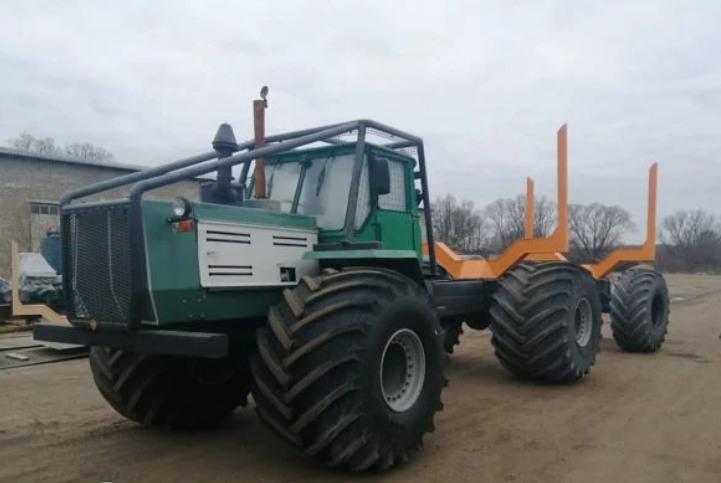 Так поступили и с данным экземпляром. Мосты от К-701 были куплены на металлоломе, как и сам трактор. И цены как у металлолома. Дальнейшие работы сводятся лишь к прямым рукам и творческим способностям. По этой причине такой трактор является весьма желанной техникой у лесозаготовщиков.