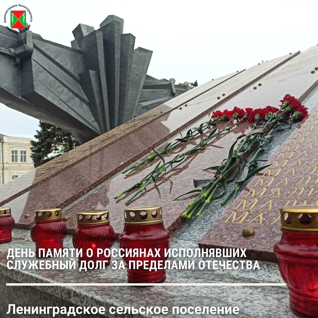 15 февраля 1989 года советские войска были выведены из Афганистан а. С тех пор в российском календаре эта дата отмечена, как день памяти о россиянах, исполнявших служебный долг за пределами Отечества. В более чем 30 вооруженных конфликтах за пределами страны несли свою службу воины-интернационалисты. Почти 25 тысяч россиян отдали свои жизни, представляя интересы своей страны на территории других государств. В скорбном списке есть имена и наших земляков.