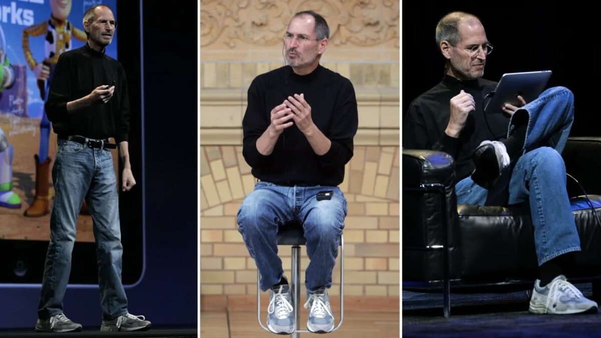 Все мы помним лаконичный образ Стива Джобса, в котором он появлялся на презентациях. Зачастую журналисты описывали его как: джинсы Levi's, кроссовки New Balance и чёрная водолазка.