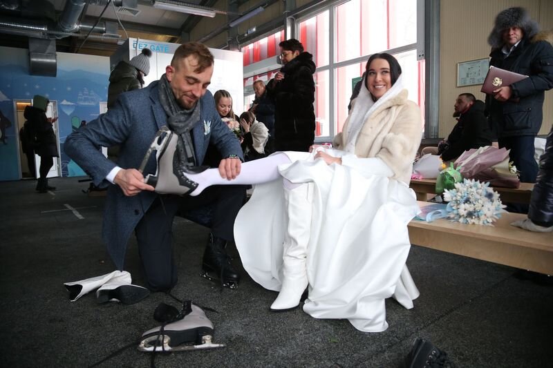 В новостях написали, что вчера молодые сыграли свадьбу на катке ВДНХ. А фигли? Мороз всего 16 градусов, а лекарство от мороза 40 градусов! Значит мы победим... ))