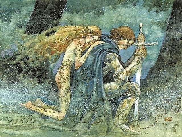 Сюжет простой: дева-тролль влюбляется в рыцаря и просит полюбить ее, взамен предлагая неисчислимые богатства (в придачу к белому телу, надо думать). Потому что - внимание: согласно скандинавским поверьям, если человек полюбит создание тонкого мира, это существо может обрести душу. Поняли теперь смысл заклятия андерсеновой Русалочки? Душа была конечной целью, любовь - средством и героиня в финале обретает душу. Другим способом, не тем, который полагала единственно возможным поначалу. Однако, к тролльей деве. Ничего у нее не вышло. Гер Маннелиг оказался добрым христианином и отказался любить девицу сомнительных религиозных убеждений (а ты колхозница, тебя любить нельзя).