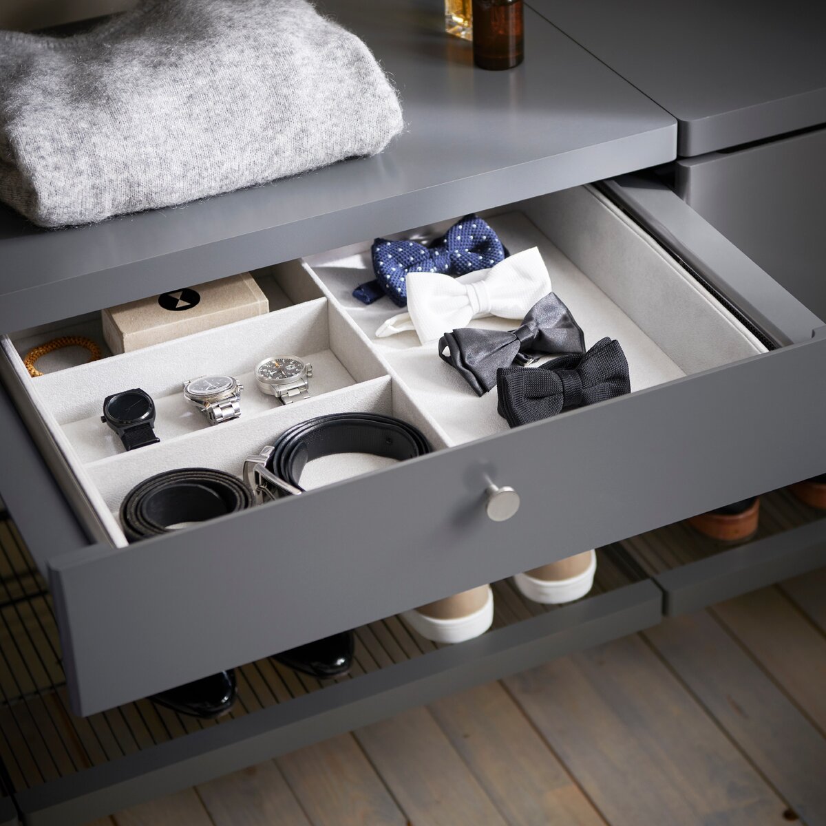 3. Выдвижная корзина с удобными разделителями для идеальной сортировки вещей