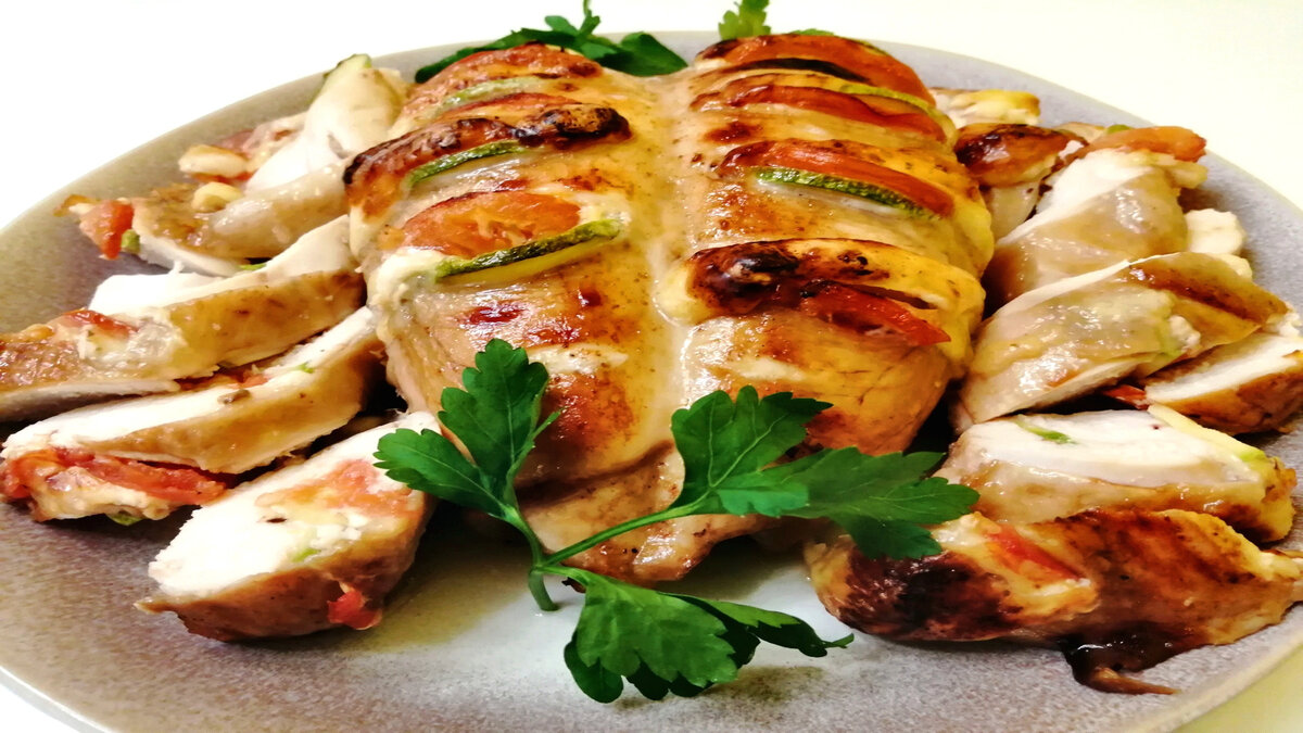 Готовим куриную грудку фаршированную овощами в духовке. Благодаря овощам грудка получается сочной и вкусной.