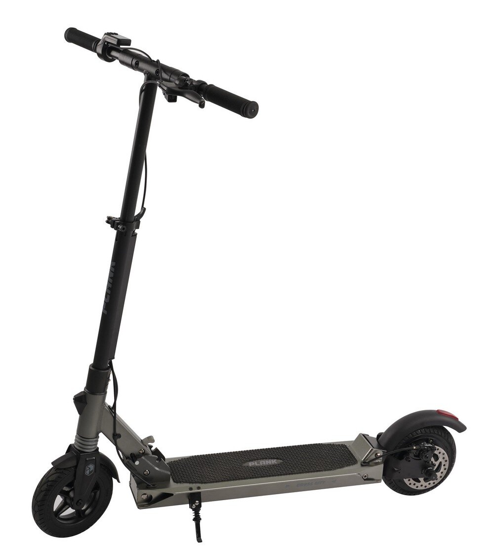 Продвинутая модель самоката Plank Cross City подходит как для городского катания, так и для ровного твердого грунта. Рама рассчитана на максимальную нагрузку в 100 кг. Основные технические особенности: складная алюминиевая рама, передний и задний амортизаторы, электромотор 350W, литиевая батарея 7.8Ah/36V, система освещения, дисковый и задний ножной тормоза, прорезиненная поверхность деки, регулируемый по высоте руль со складными ручками, надувные колеса 8 дюймов, LCD дисплей, подножка. Максимальная скорость - 25 км/ч. Пробег на одной зарядке: 20-25 км. Время зарядки: 3-4 часа. Вес самоката - 11,4 кг.