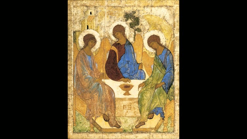 Хранится в Государственной Третьяковской галерее в Москве. Икона Святой Троицы, написанная Андреем Рублевым в XV веке, является одной из самых прославленных русских икон. Икона представляет собой доску вертикального формата. Цари (Иван Грозный, Борис Годунов, Михаил Федорович) «обкладывали» икону золотом, серебром и драгоценными камнями. Сегодня оклад хранится в Сергиево-Посадском государственном музее-заповеднике.