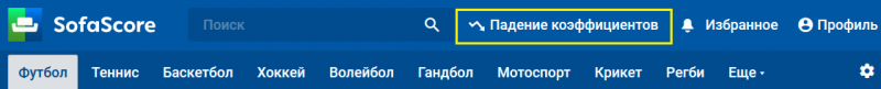 1. . Sofascore Софаскоре является одним из самых популярных беттинговых сервисов за рубежом. Раздел «Падение коэффициентов» является основным на сайте и находится в самой шапке ресурса, как показано на примере ниже.