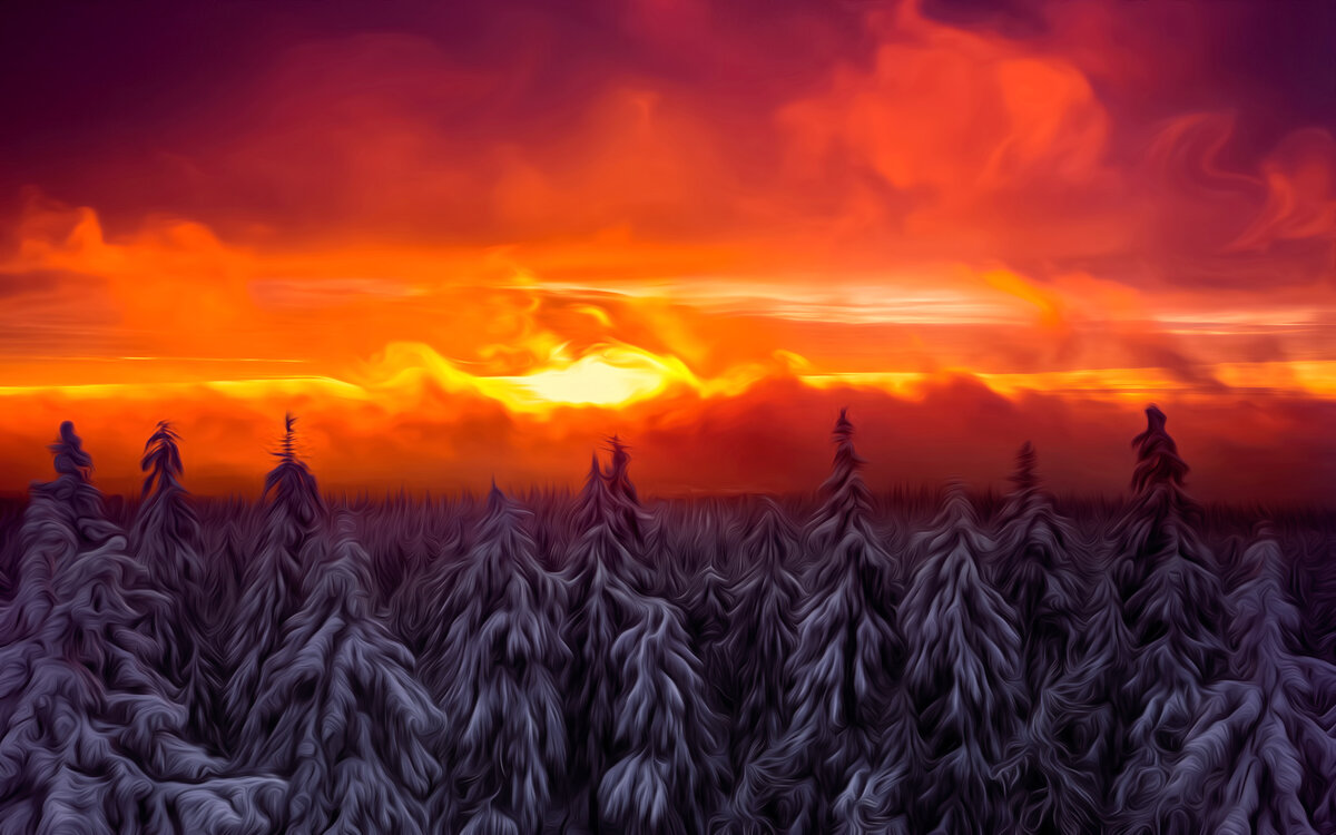Белка, однако, хоть и болталась из стороны в сторону, крепко держала её плечо. Алёнку трепало ветром, под ногами проносились лохматые ели, покрытые снегом, а вдали багровел закат.