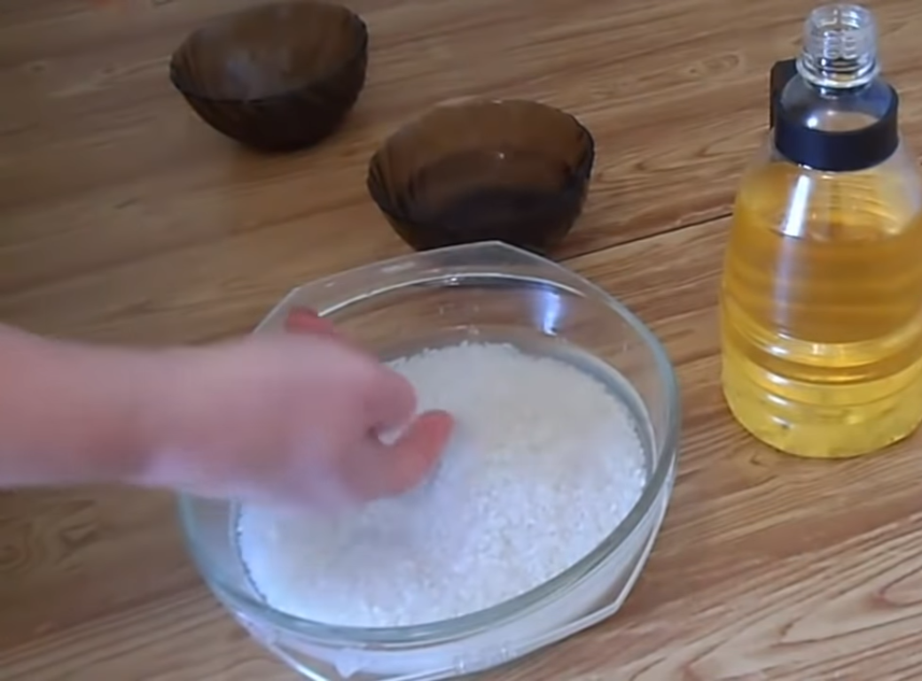 - Затем нужна чайная ложка соли (опять же, по вкусу). И 1,5 чайных ложки растительного масла. Перемешали.