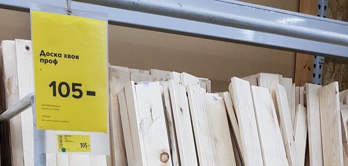 Купил три доски сосновые (20x95x3000) по 105р. Выбирал очень долго, 99% досок имеют сильные изгибы. Наверное пересмотрел около 50шт.