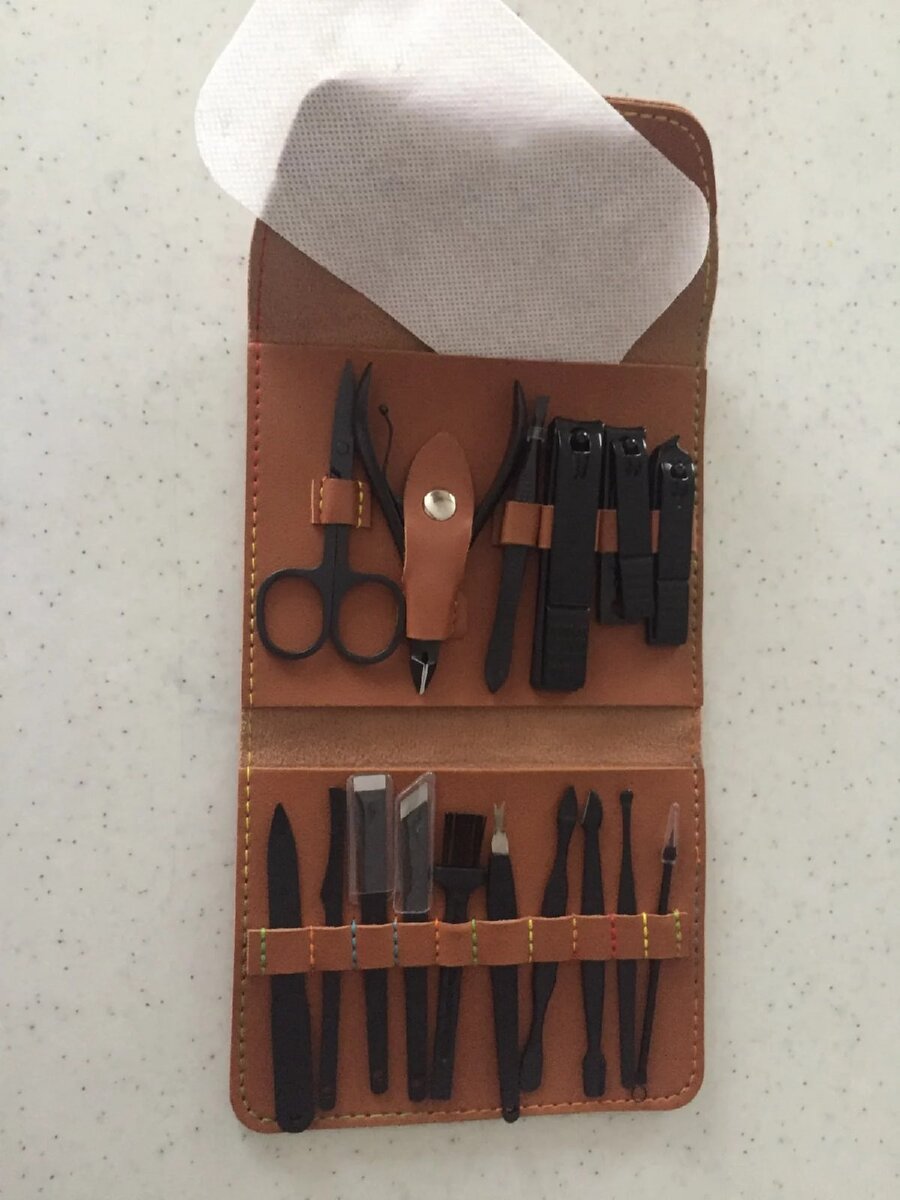Изготовленный из нержавеющей стали набор прослужит долгое время. Любителям делать себе качественный маникюр и ухаживать за пластинаи ногтя и кутикулами самостоятельно. В набор входят 14 разных предметов. Различные кусачки для ногтевой пластины, небольшие скальпели для груминга кутикул, щипцы для удаления волосков, лопатчка для удаления загрязнений.