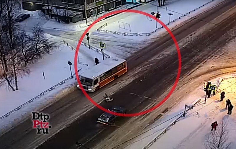 В Петрозаводске пассажирский автобус сбил девушку-пешехода. Ее отбросило на несколько метров, после чего она самостоятельно поднялась на ноги и ушла с проезжей части. Видеозапись инцидента опубликовал сайт «ДТП Петрозаводска и Карелии».