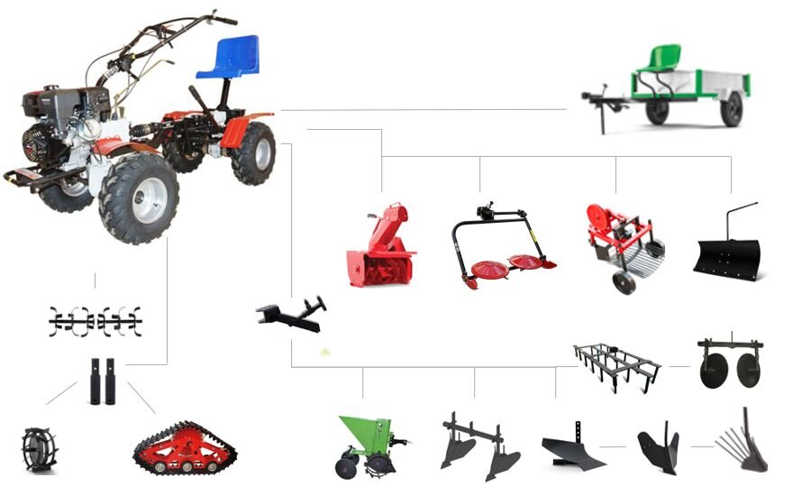- Полная унификация под мотоблок с любым мотором