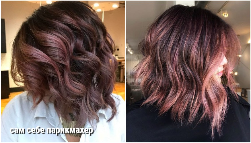 "Розовое золото" - это смесь золотисто-розового и пурпурного, на темных волосах получается очень интересный эффект. Вы можете сделать однотонное окрашивание или сложное - балаяж, омбре.