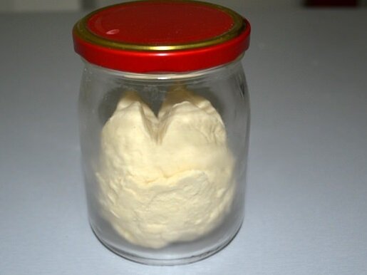 Закваску можно хранить в закрытой стеклянной банке с крышкой или пленкой.