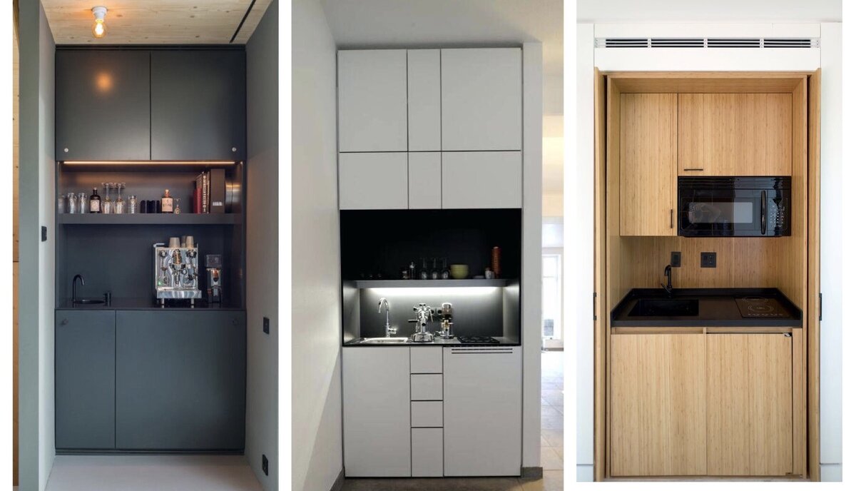Один из трендов последних лет - появление портативной кухонной техники: компактные индукционные панели, печи, блендеры, кофеварки и др. Такой подход для тех кто не планирует заграмождать пространство своей кухонной техникой - попользовался убрал в шкаф.
