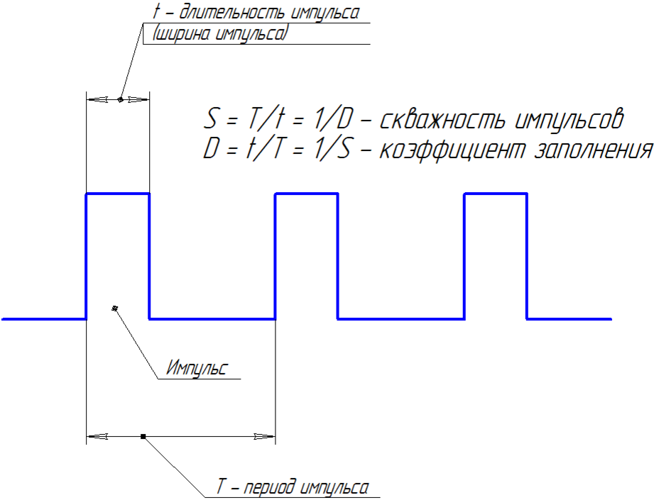 Как видите, здесь есть импульсы, есть длительность импульсов и есть период следования импульсов.